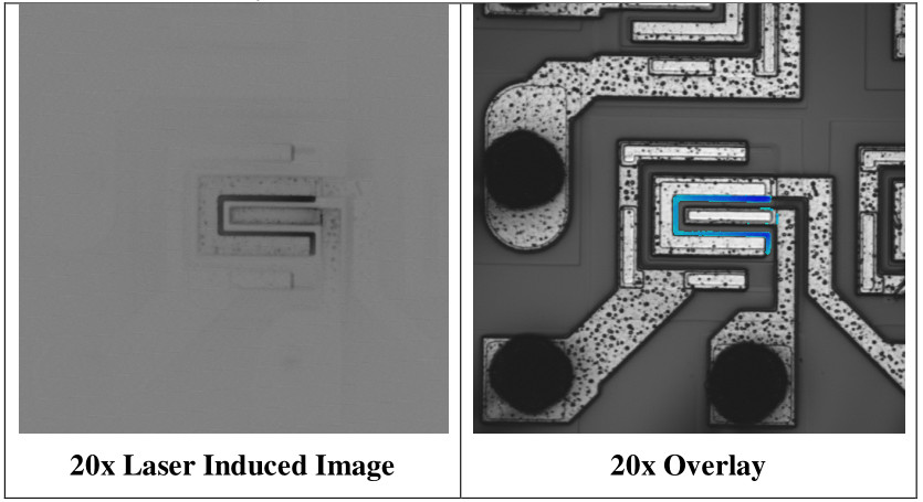 激光誘導(dǎo)掃描顯微技術(shù)模塊配置了波長1340nm的激光源及供應(yīng)商公司專有的Laser Pulsing技術(shù)(簡稱TIVA)。Laser Pulsing技術(shù)主要用于對檢測信號進(jìn)行放大,Laser Pulsing頻率可達(dá)1-10KHZ。該模塊通過外部激勵(lì)產(chǎn)生信號,再通過激光逐點(diǎn)對芯片進(jìn)行掃描,掃描過程中產(chǎn)生熱導(dǎo)效應(yīng),會(huì)引起電路中電阻的變化,進(jìn)而確定缺陷的位置。