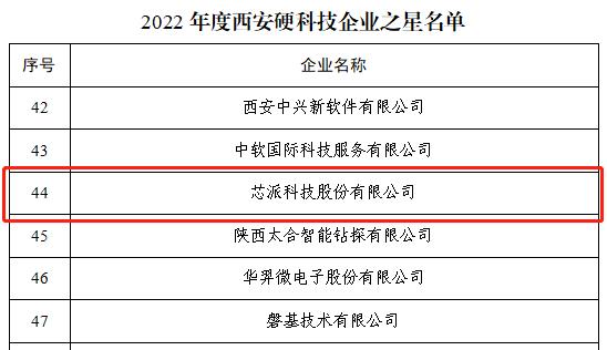 近日,經初審、專家評審等多個環節,西安市科學技術局公布了“2022年度西安市硬科技企業之星”認定名單,芯派科技股份有限公司成功上榜,成為掌握核心技術和具有高成長性的優秀硬科技企業之一。