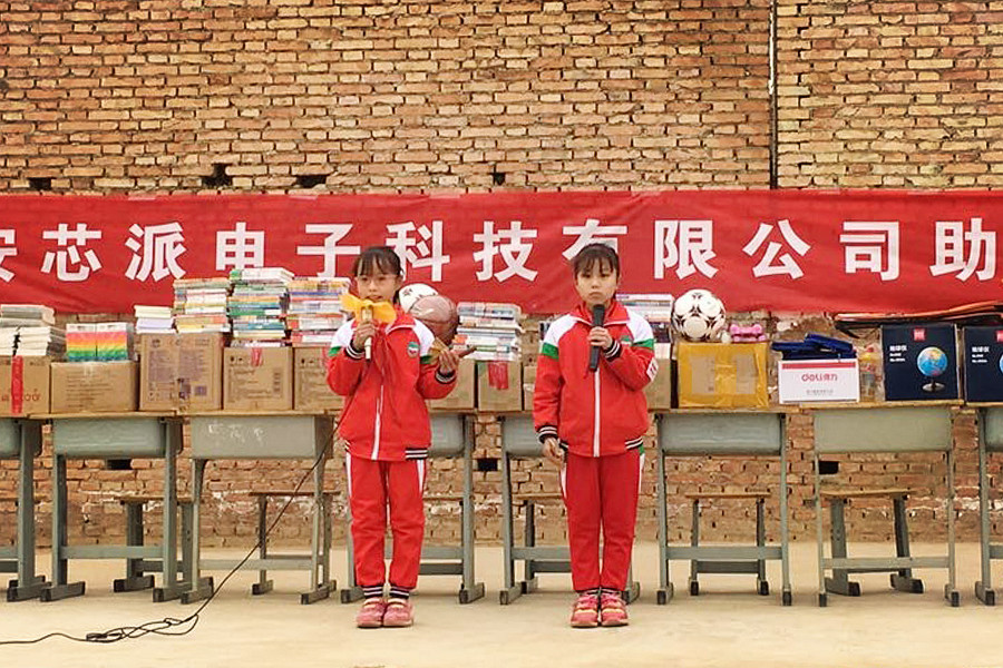 中午時分,芯派科技李總及愛心小組的成員們到達杜家小學,為同學們帶來文體用品、教學儀器、活動器材等百余件愛心物資和數百本兒童讀物。雖然來之前就知道杜家小學學校環境比較艱苦,但是當同事們來到學校的時候,還是被簡陋的教舍和艱苦的環境給深深觸動。知識改變命運,讀書改變人生,在這樣艱苦環境下學習的師生們讓人心生敬意!