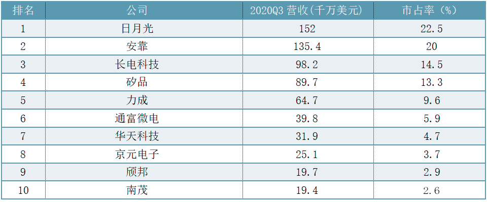 作為本土芯片封測領(lǐng)域三大龍頭,長電科技、通富微電、華天科技亦在全球占有一席之地。據(jù)拓墣產(chǎn)業(yè)研究院2020Q3數(shù)據(jù),長電科技、通富微電、華天科技分別位列全球第三、第六、第七,占比分別為14.5%、5.9%、4.7%,合計(jì)占比達(dá)到25.1%。全球芯片封測市場也基本形成了以中國大陸(長電科技+通富微電+華天科技等)、中國臺灣(日月光+矽品+力成等)和美國(安靠)為主導(dǎo)的三足鼎立的局面。