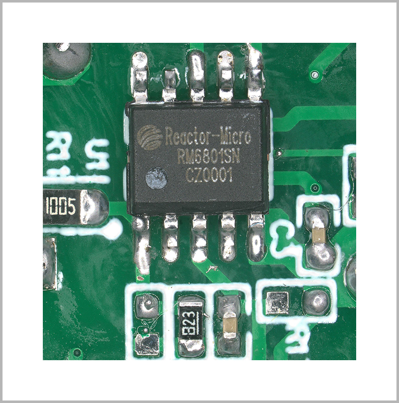 “西安寬禁帶半導體應用研究中心”該款60W GaN PD 適配器的控制芯片來自于西安本土企業“陜西亞成微電子股份有限公司”。“陜西亞成微電子股份有限公司”是國內著名的高功率密度電源芯片供應商,其在全球率先發布了適用于適配器的 GaN 驅動專用芯片RM6801SN,“西安寬禁帶半導體應用研究中心”該款PD 適配器DEMO即采用的是亞成微電子的RM6801SN,RM6801SN是一種低成本針對GaN設計的ZVS驅動器,可直接驅動GaN器件,無需外圍驅動電路,整體電路結構簡單。通過輔助繞組實現的ZVS功能可有效降低功率器件在開通時的開關損耗,提升系統效率,相比目前市面上應用較多的單一的QR控制模式,有極大優勢。