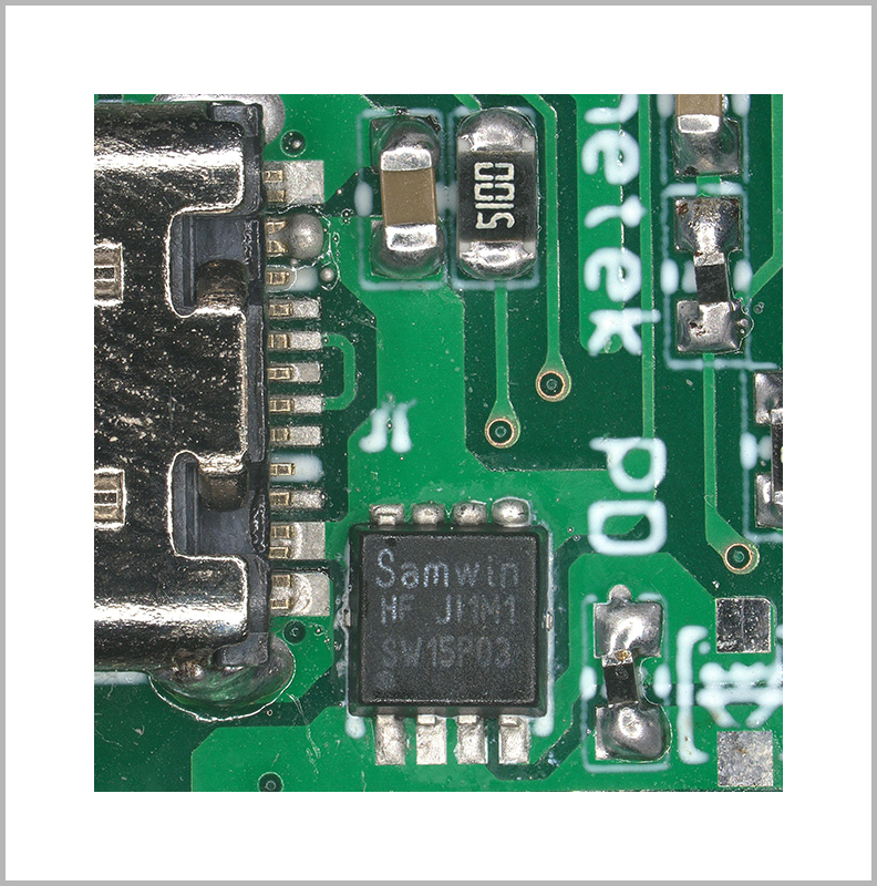協議IC采用國內高性能模擬和混合集成電路供應商“深圳慧能泰半導體科技有限公司” 的HUSB350,HUSB350通過了PD3.0 PPS認證,支持USB3.0和USBType-C1.2標準,內部集成了恒壓補償環路和橫流補償環路,適用于1C,1C+1A,2C,2C+1A,1C+2A等多種結構,本次DEMO輸出為1C口,從協議測試結果可以看出,該DEMO支持PD3.0、APPLE 5V 2.4A、BC1.2 DCP 5V 1.5A、QC2.0 5V 9V 12V、SAMSUNG AFC 9V、HUAWEI FCP 5V 9V等協議,可對支持相關協議的所有手機及平板電腦進行充電。